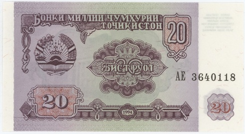 / Tadjikistan 20 Rubles 1994 Neuf