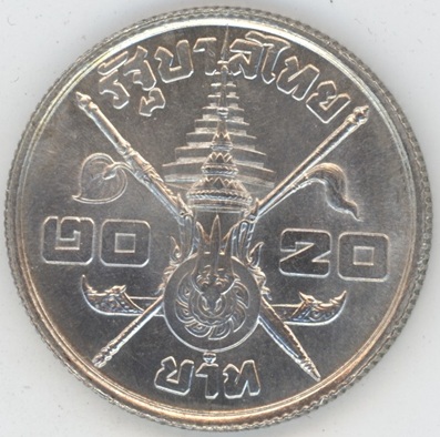 Thaïlande 20 Baht 1963 Anniversaire du Roi (vz) en argent 0.750 (20gr) Y# 86