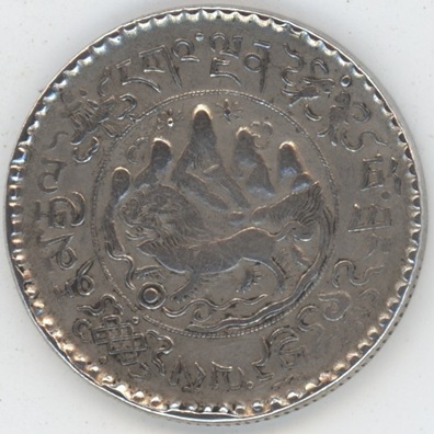 Tibet Chine 3 Srang (1935-38) ss en argent 12.3gr Y# 26