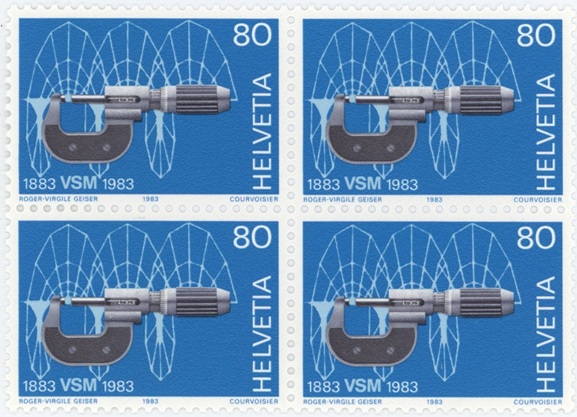 Timbres Bloc de quatre 1983 Jubilés Soc. des constructeurs de machines micromètre Neuf