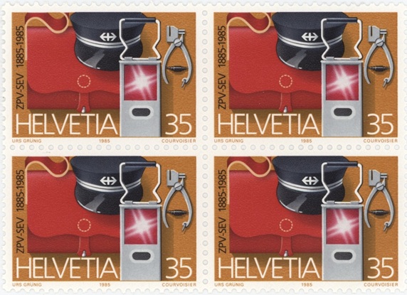 Timbres Bloc de quatre 1985 100 ans Fédération du personnel des trains Neuf