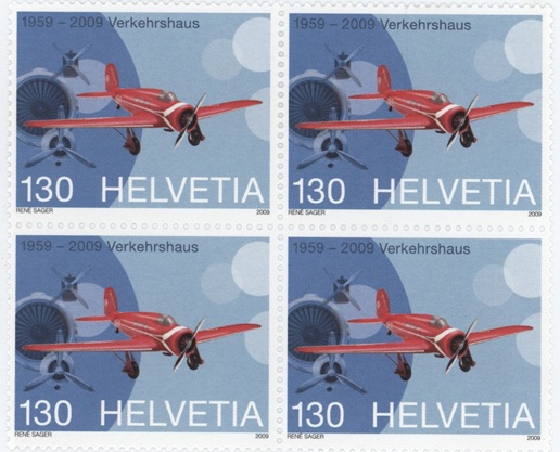 Timbres Bloc de quatre 2009 Cinquantenaire du Musée Suisse des Transports Lokheed Orion 9C Spécial Neuf