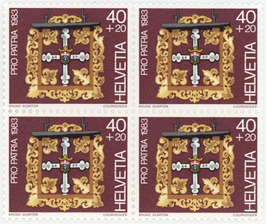 Timbres Bloc de quatre Pro Patria 1983 Enseignes des auberges Hôtel de la Croix Neuf