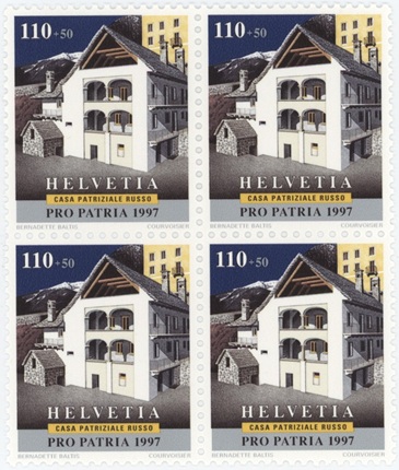 Timbres Bloc de quatre Pro Patria 1997 Biens culturels et paysages Casa Patriziale Russo Neuf