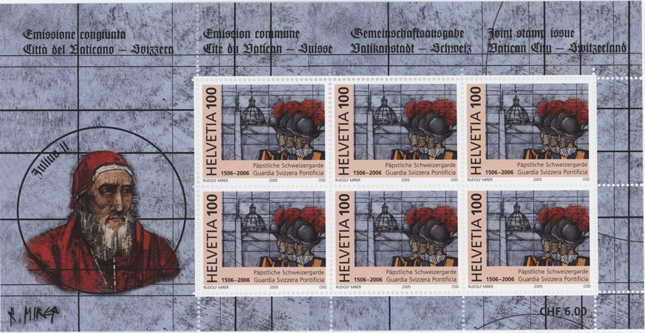 Timbres Emission Commune Suisse-Vatican 500 ans de la Garde Suisse En Rang petit feuillet de 6 timbres Neuf
