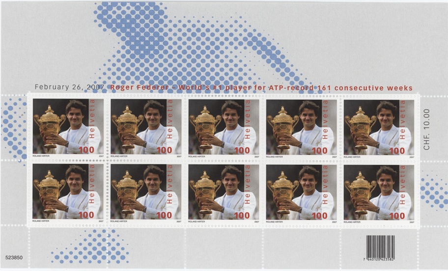 Timbres spéciaux 2007 Roger Federer feuillet de 10 timbres Neuf