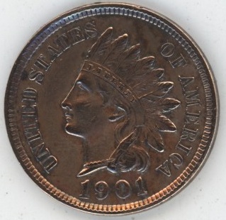 USA 1 Cent 1901 Indian Head (ss) Bronze KM# 90a