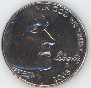 USA 5 cents 2005 D Jefferson Vue de l’océan (ss+) cupronickel KM# 369