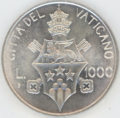 Vatican 1000 lires 1975 Jean Paul I (unz) en argent 0.835 (14.6gr) KM# 142