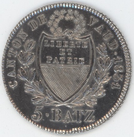 Vaud 5 Batz 1831 (ss+) en argent