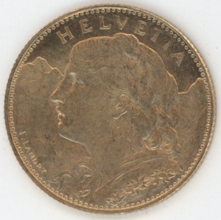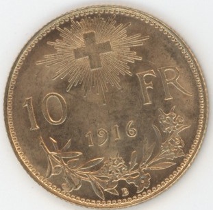 Suisse / Schweiz Vreneli 10 Francs OR 1916 (vz-unz) en or 0.900 (3.22gr)