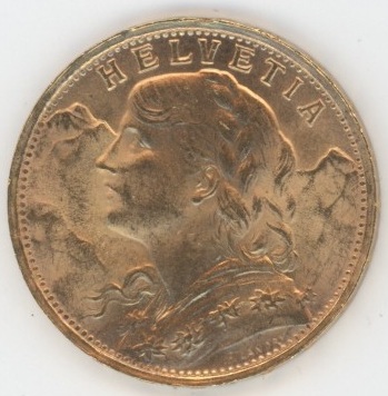 Suisse / Schweiz Vreneli 20 Francs OR 1935 LB (vz) en or 0.900 (6.45gr)