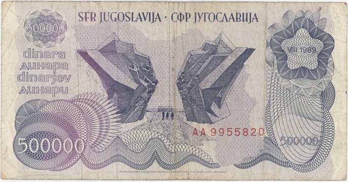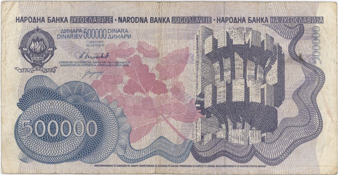 / Yougoslavie 500000 Dinara 1989